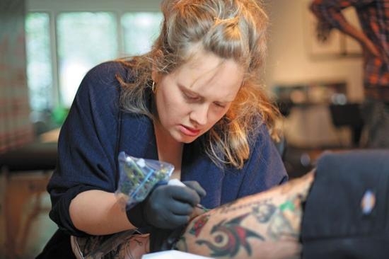 据国外媒体报道,刚出新专辑、拿奖到手软的歌手阿黛尔(Adele)近日被纹身师“砰砰”曝光私人爱好——纹身,称其不仅了解纹身图案等专业知识,还亲自上阵给纹身师做纹身,堪称跨界能手。