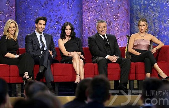 美国当地时间2月21日晚九点,NBC特别节目“给詹姆斯·伯罗斯的礼物”在美播出,《老友记》众主演集体现身。除了钱德勒的扮演者马修·派瑞因在伦敦排戏未到场,余下五人——詹妮弗·安妮斯顿(饰瑞秋)、大卫·休默(饰罗斯)、柯特妮·考克斯(饰莫妮卡)、马特·勒布朗(饰乔伊)、丽莎·库卓(饰菲比)再度同框,同坐一张红沙发叙旧。