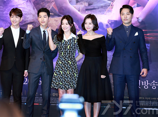 《太阳的后裔》制作发表会于韩国时间22日下午2点在首尔江南区论岘洞皇宫酒店内举行。《太阳的后裔》被称为“乌勒克”,讲述的是在战争硝烟弥漫、疾病蔓延的乌鲁克这一极端的环境下,梦想着爱情和成功的青年刘时镇(宋仲基 饰)、姜暮烟(宋慧乔 饰)、徐大英(晋久 饰)、尹明珠(金智媛 饰)等人的故事。该剧由《秘密花园》、《继承者们》的金恩淑编剧和《女王的教室》的金元锡编剧共同执笔,由《秘密》、《学校2013》的李应福PD担当导演。