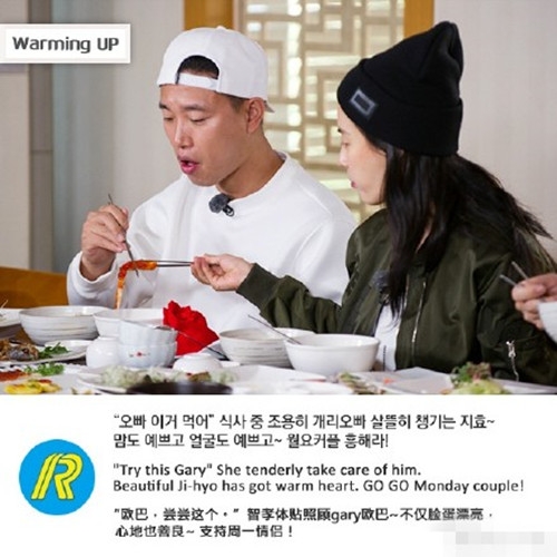 SBS热门综艺《Running Man》公开了最新一期的Warming Up现场图,其中,智孝为Gary夹菜的照片引发了大众的广泛关注,纷纷感叹萦绕在两人之间比情侣更像情侣的甜蜜氛围令人羡慕。另外,这期节目将于25日与大家见面。