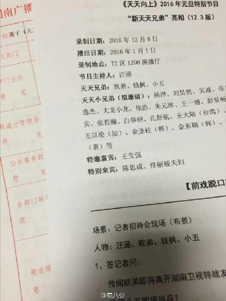 《天天向上》改版新天天兄弟亮相,吴磊刘昊然王大陆杨洋在名单之中,近日,据网上知名博主“芒果妈妈”爆料,《天天向上》2016全新改版,并且附上一张信息大照片,从照片上看主持人只保留汪涵一位。