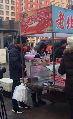 有网友爆料称,郑爽的节目任务是在街头贩卖糖葫芦,总爆料图片上可以看出,她身穿着羽绒服,头戴着兜帽,戴着粉红色的袖套,系着粉红色的围裙,造型十分清纯可人,可谓是糖葫芦西施。当然也有不少粉丝暗暗心疼:鼻子都冻红了!赚钱可真不容易。