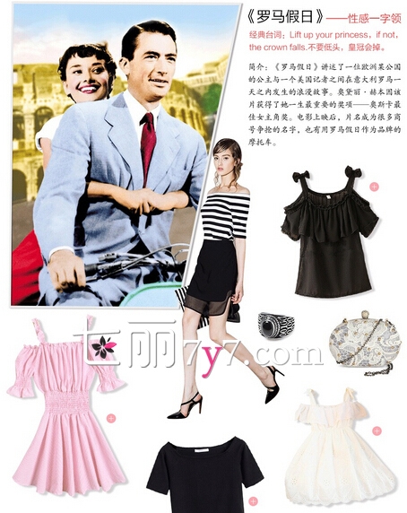 赫本的《罗马假日》也是经典中的经典,一字领搭配网纱黑裙,配上蕾丝的复古小包,小包上面的小扣子带你回顾过去的时光,整体高贵又气质。